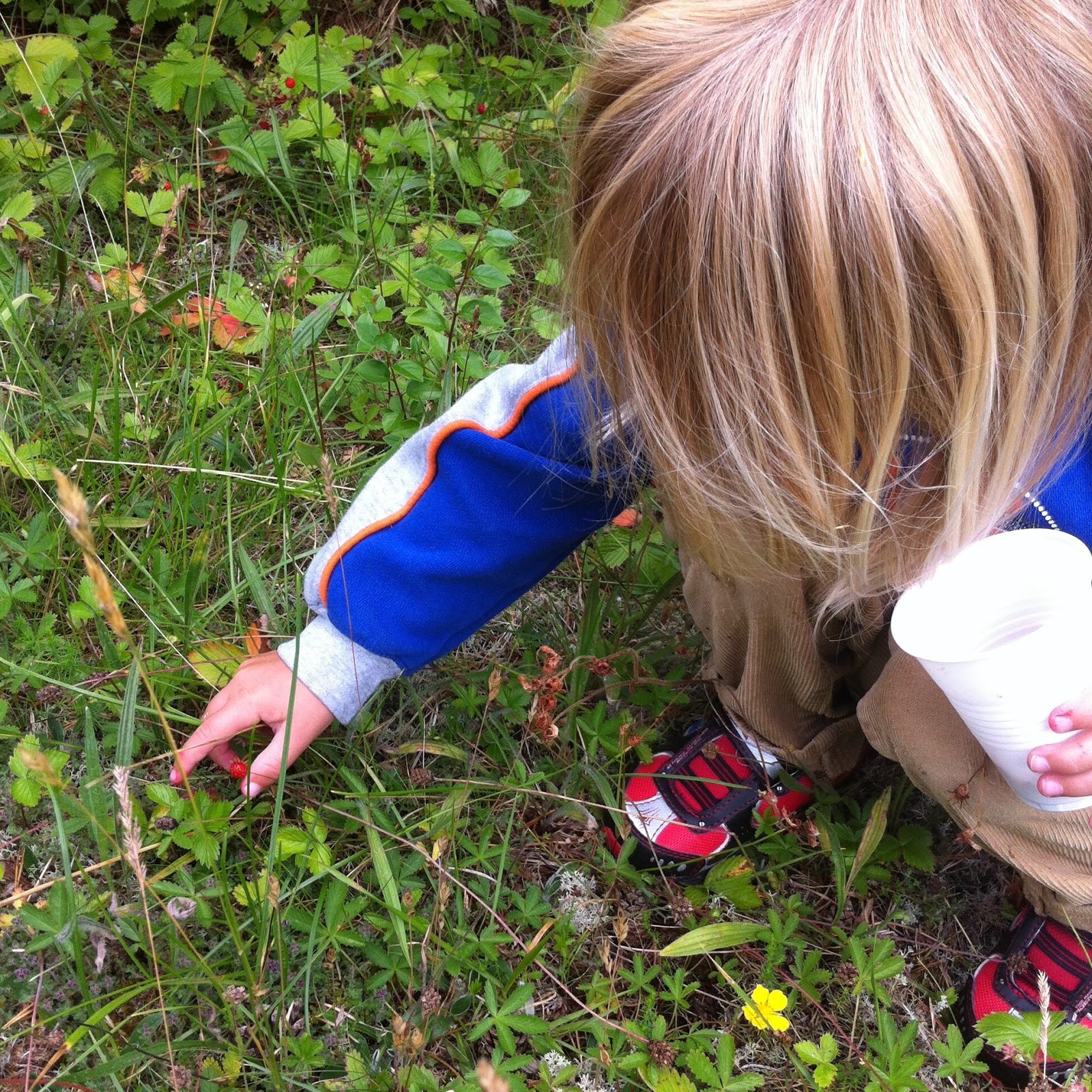Great day even if the sun did not burst. Went wild strawberry picking before lunch and cleaned out the car in the afternoon.